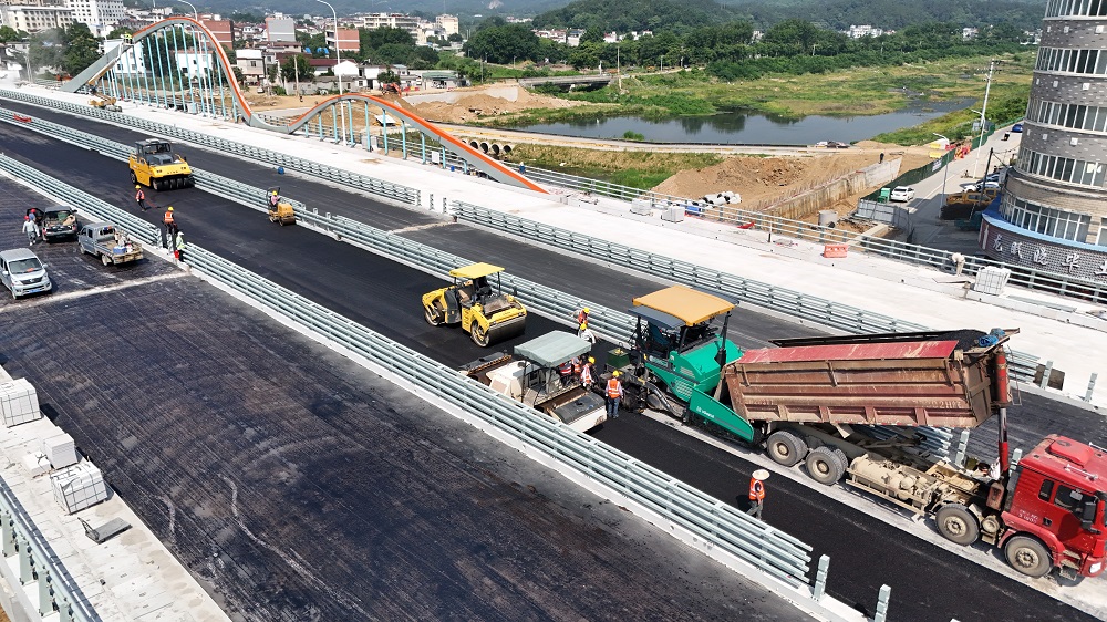 端午粽飄香,施工大干忙。建工投資桐城片區開(kāi)發(fā)項目龍眠新橋改造工程持續發(fā)力,不斷刷新“進(jìn)度條”,6月8日上午,正式啟動(dòng)橋面鋪裝瀝青下面層攤鋪作業(yè),標志著(zhù)該項目距離通車(chē)目標又邁進(jìn)一大步。