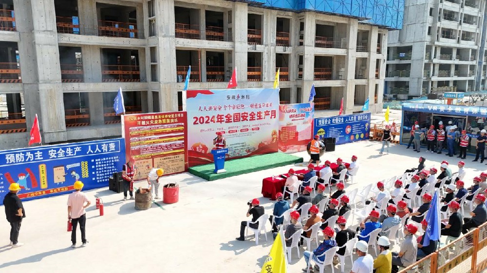 6月12日上午,蚌埠市固鎮縣住建系統2024年“全國安全生產(chǎn)月”啟動(dòng)儀式在安徽水利皇龍佳苑安置房項目隆重舉行??h住建局、縣建管股、固鎮縣各在建項目經(jīng)理、項目總監等參建單位人員共計70余人參加。