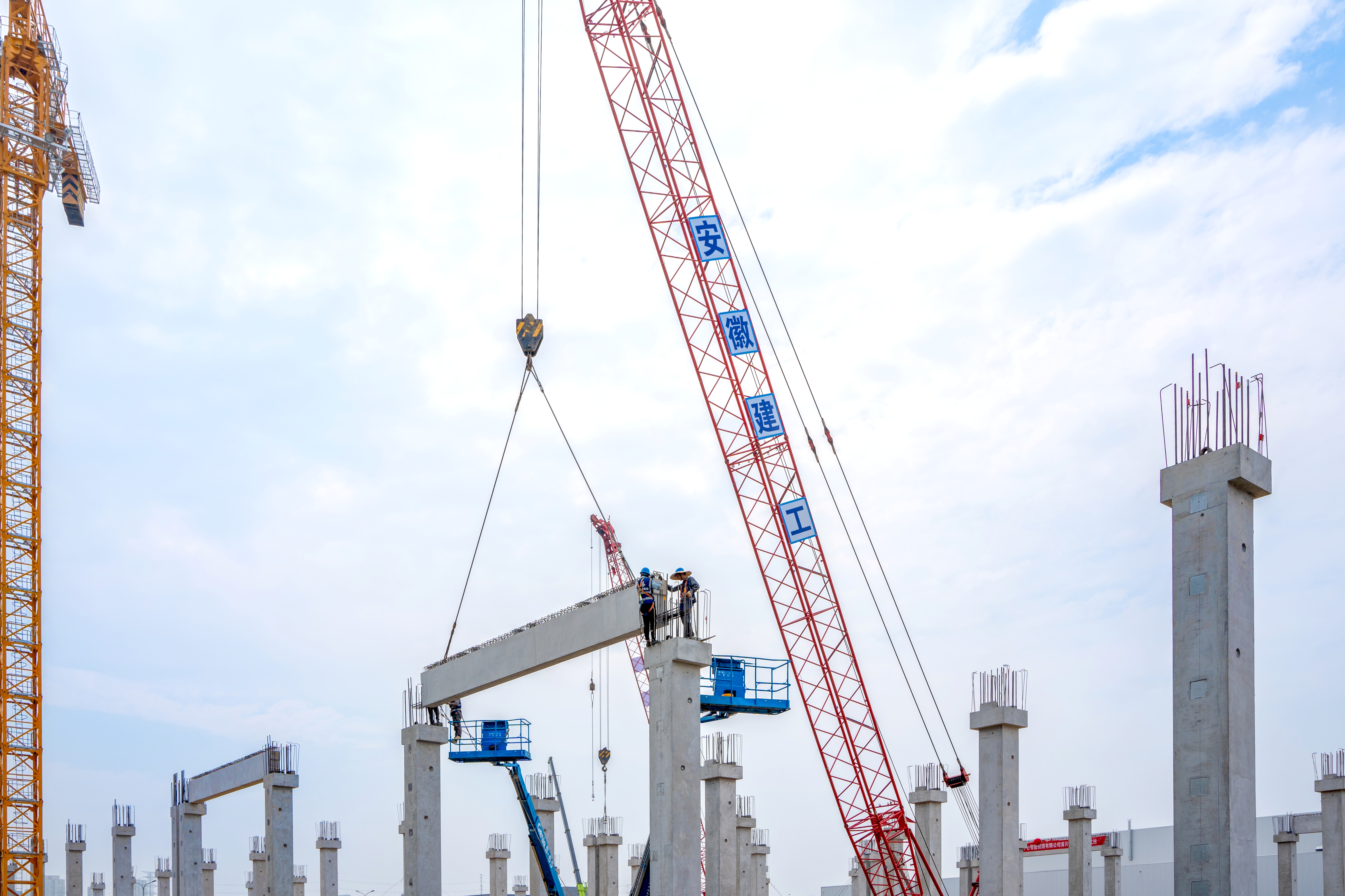 6月16日,建工三建大眾科技三期項目首批六根預制梁完成吊裝,標志著(zhù)項目建設取得重要階段性成果。
