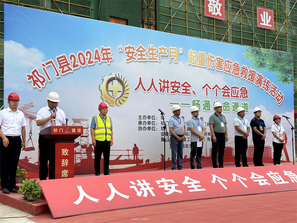 6月18日,祁門(mén)縣2024年“安全生產(chǎn)月”起重傷害應急救援演練活動(dòng)在祁門(mén)低碳科創(chuàng )園項目順利開(kāi)展。祁門(mén)縣人民政府、祁門(mén)縣應急管理局、祁門(mén)縣住建局、祁門(mén)縣建筑業(yè)協(xié)會(huì )的相關(guān)領(lǐng)導,以及祁門(mén)縣內施工企業(yè)負責人、分管安全工作負責人、安全員和在建工程項目經(jīng)理、外地施工企業(yè)項目負責人和安全員、在建工程監理負責人和建設開(kāi)發(fā)項目負責人約200人現場(chǎng)觀(guān)摩。