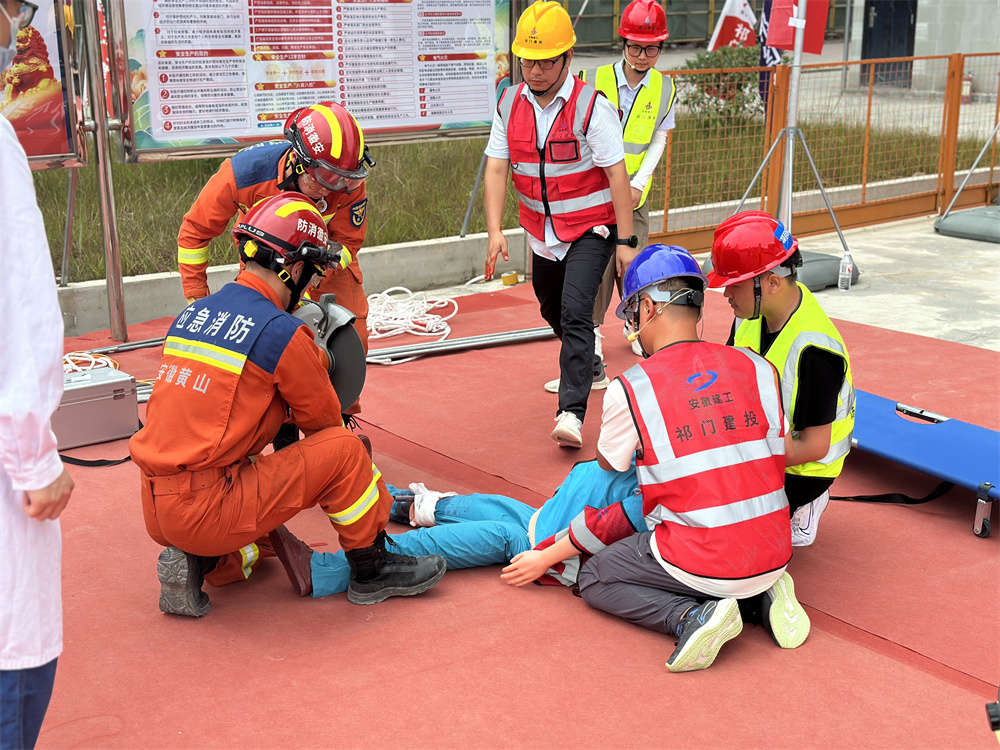 整個(gè)演練過(guò)程緊張逼真、有條不紊,充分展現了項目團隊面對突發(fā)事故的高效應對能力和協(xié)同配合能力。此次演練活動(dòng)不僅僅是一次對項目安全保障機制的一次實(shí)戰檢驗,更進(jìn)一步強化了全體項目人員的安全意識,提高了應對突發(fā)事件的實(shí)戰能力。祁門(mén)低碳科創(chuàng )園項目將以此次活動(dòng)為契機,持續加強安全管理,不斷完善應急預案,為項目的順利推進(jìn)和人員的生命財產(chǎn)安全提供堅實(shí)保障。