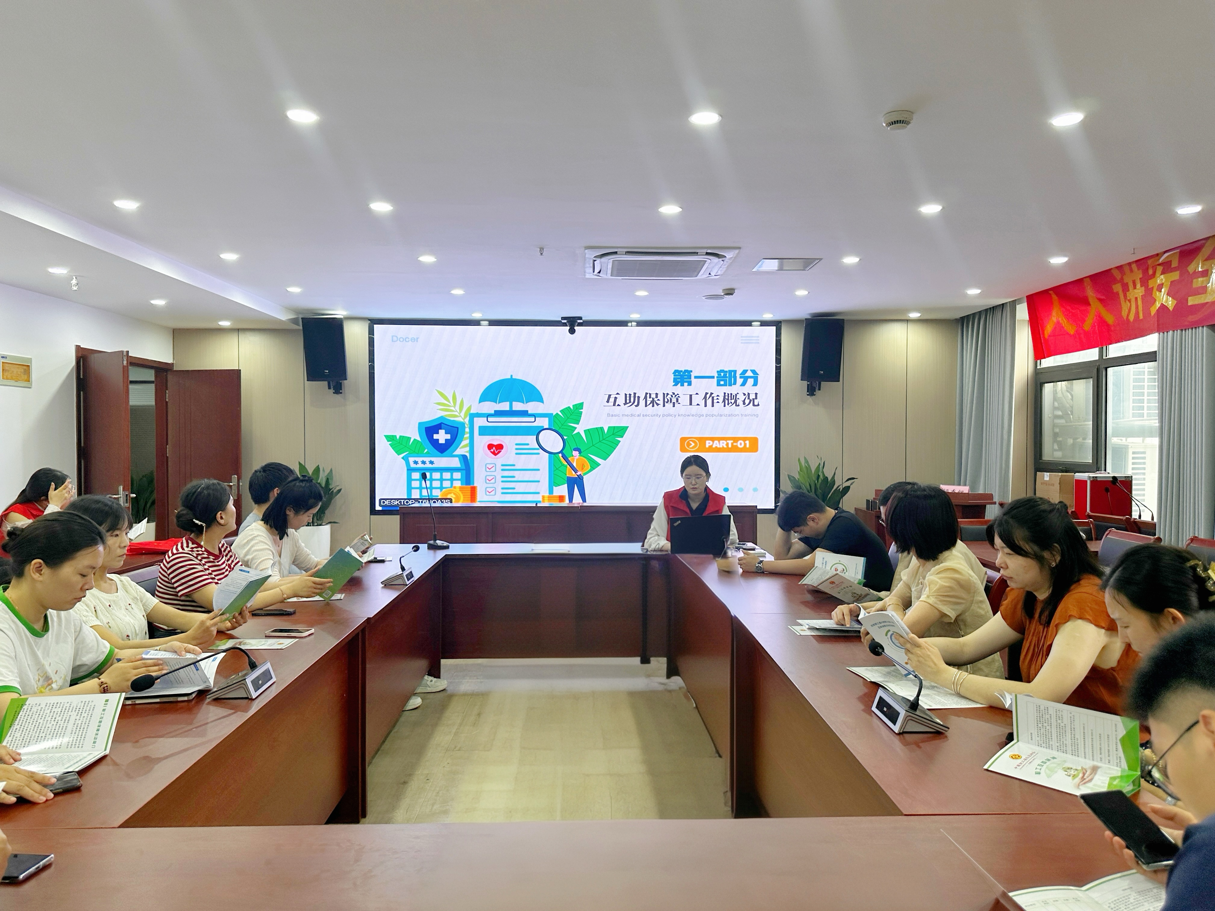 公司工會(huì )與團總支在機關(guān)會(huì )議室講解互助保障活動(dòng)情內容,解答職工相關(guān)疑問(wèn)