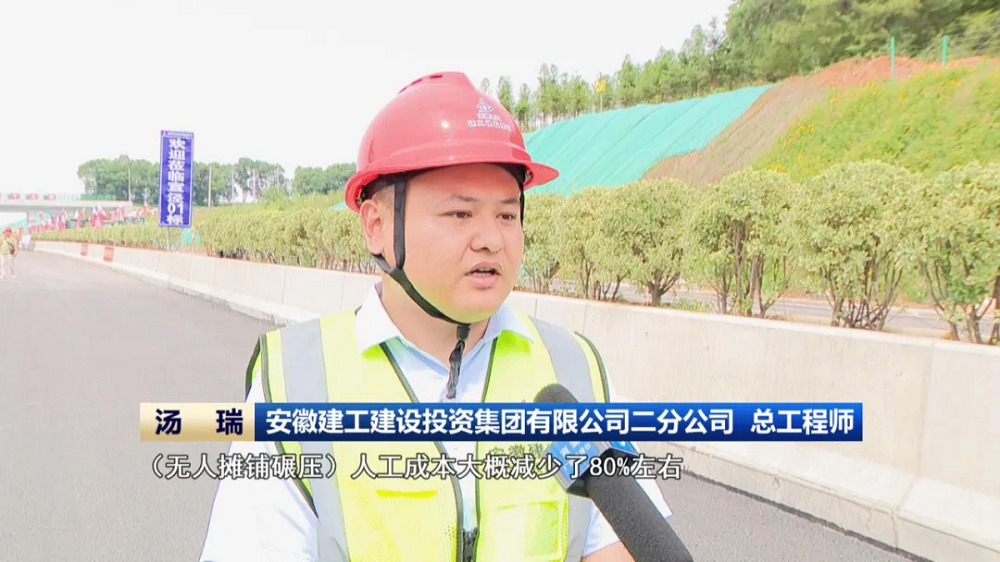 安徽建工建設投資集團有限公司二分公司總工程師 湯瑞:“相比傳統工藝,(無(wú)人攤鋪碾壓) 人工成本大概減少了80%左右。效率提升了50%,我們現場(chǎng)所得到的平整度,壓實(shí)度,還有這個(gè)滲透系數都是滿(mǎn)足規范要求的,能夠保證現場(chǎng)的一個(gè)施工質(zhì)量?!?/p>