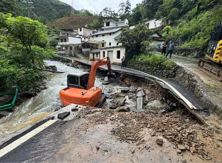 6月24日早上7:30,建工交航皖南分公司應急搶險隊抵達徽州區富溪鄉呈陽(yáng)村,對呈陽(yáng)河河堤及河邊鄉道的坍塌路段進(jìn)行緊急搶修、清理,確保行車(chē)安全。