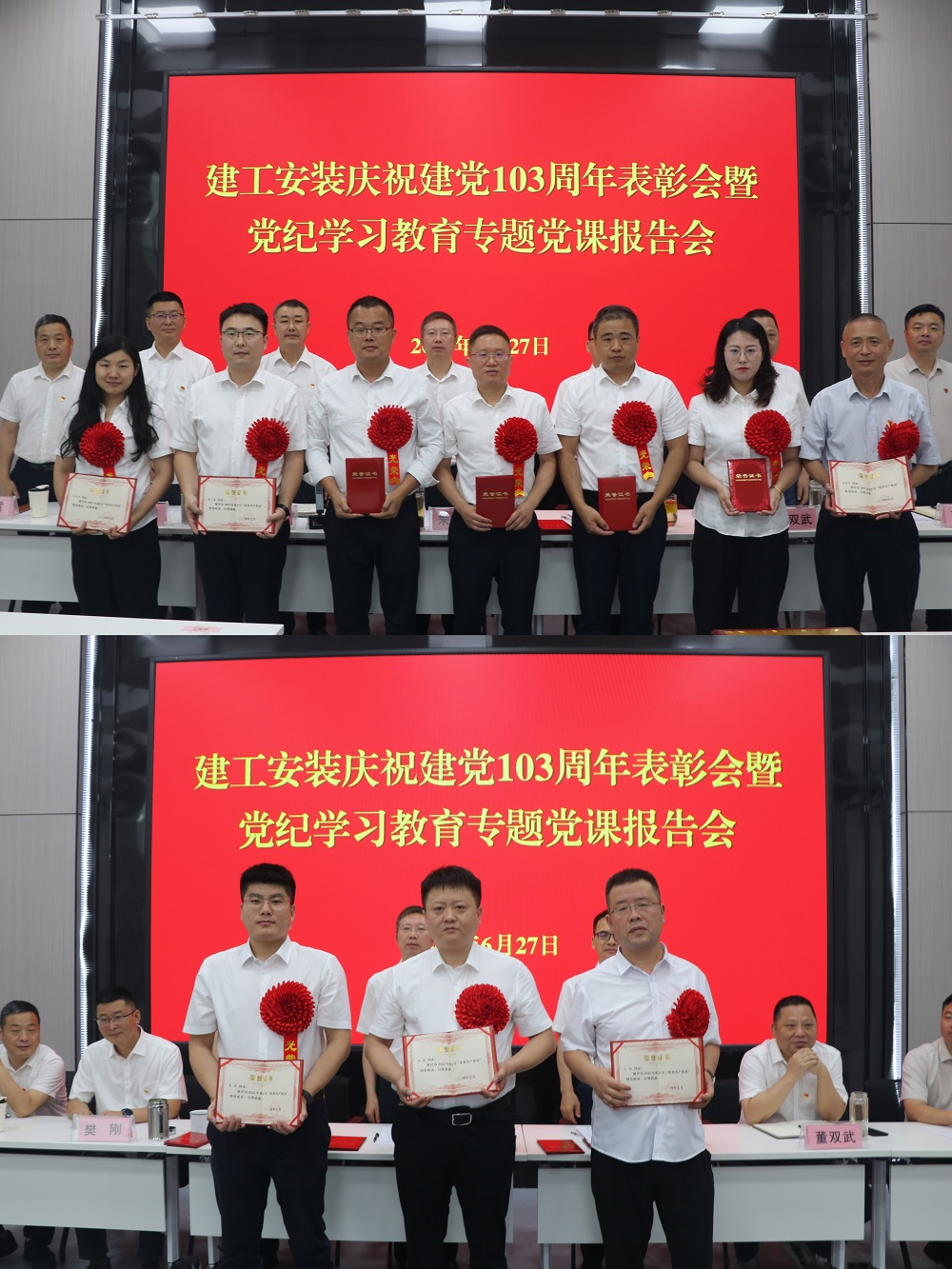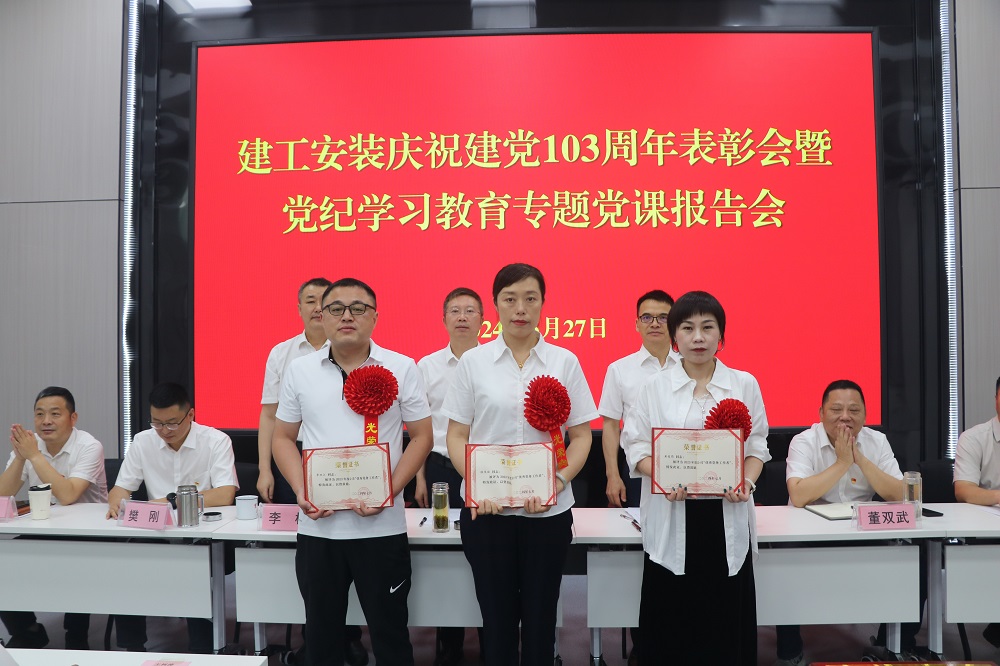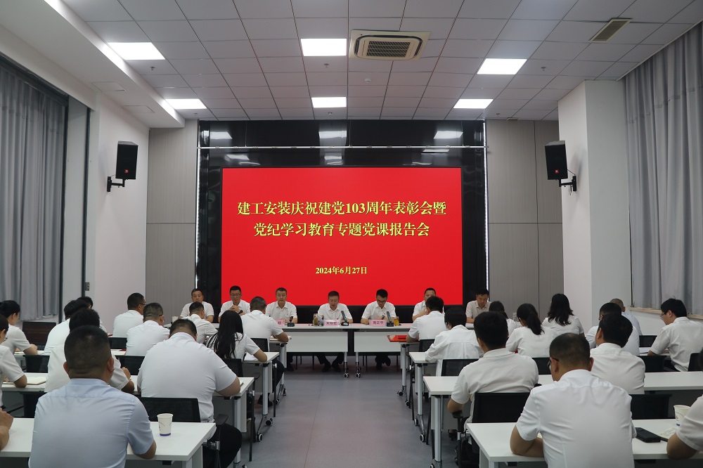 為慶祝中國共產(chǎn)黨成立103周年,扎實(shí)推進(jìn)黨紀學(xué)習教育走深走實(shí)。6月27日上午,建工安裝黨委召開(kāi)慶祝建黨103周年表彰會(huì )暨黨紀學(xué)習教育專(zhuān)題黨課報告會(huì )。公司領(lǐng)導班子成員出席會(huì )議,會(huì )議由公司黨委副書(shū)記、副總經(jīng)理周正平主持。