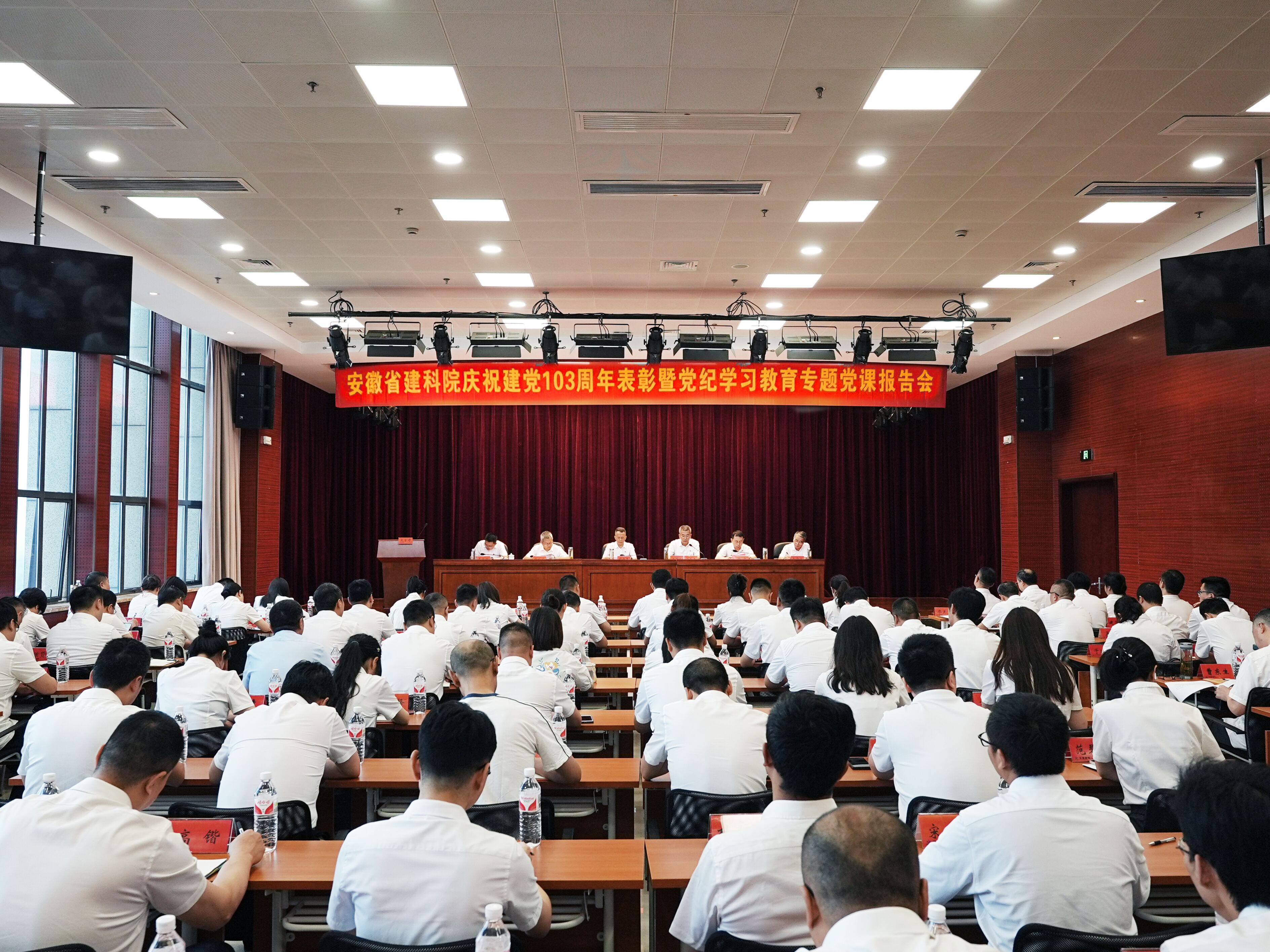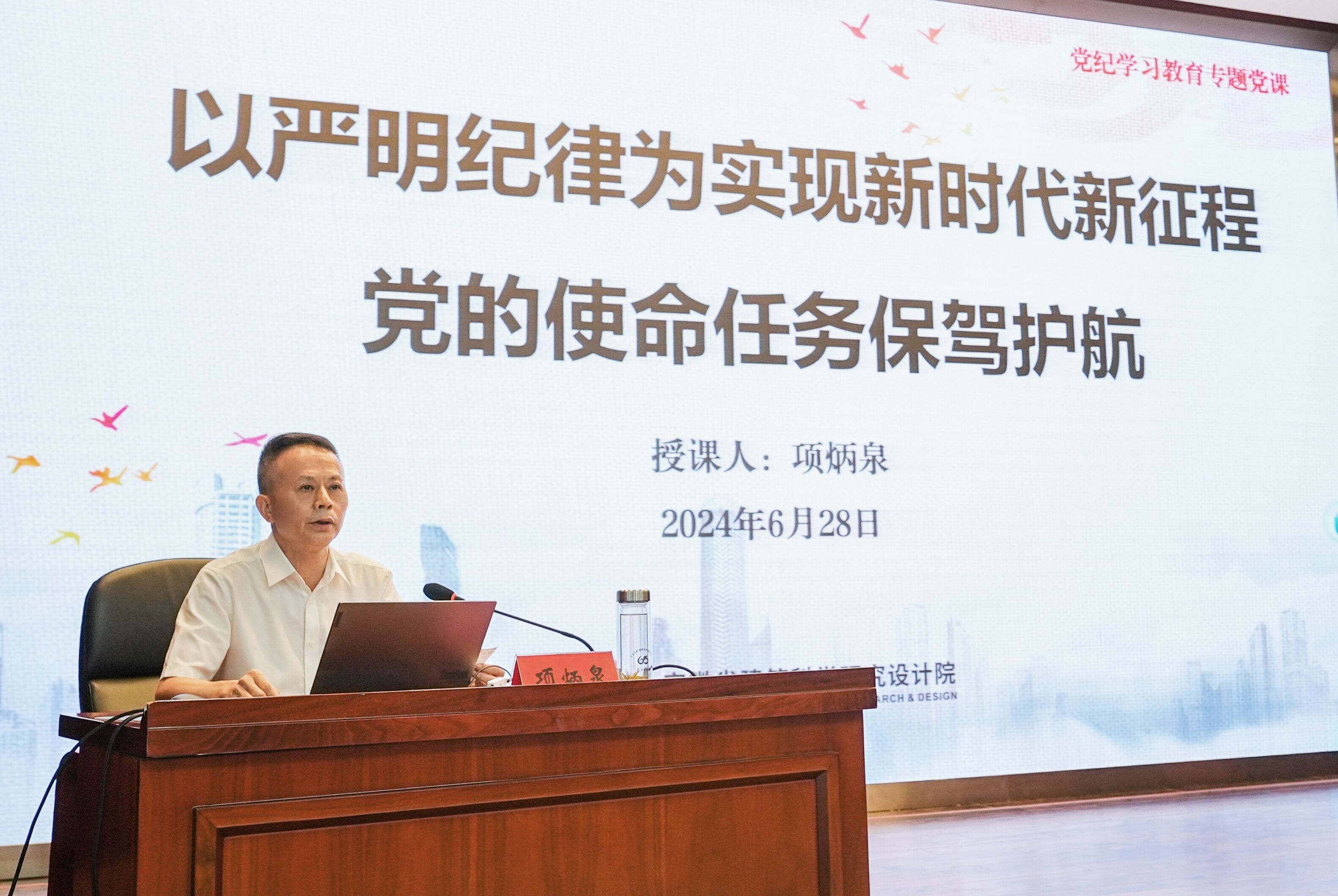 在中國共產(chǎn)黨成立103周年之際,為深入學(xué)習貫徹習近平總書(shū)記關(guān)于黨紀學(xué)習教育的重要講話(huà)和重要指示精神,扎實(shí)推動(dòng)黨紀學(xué)習教育走深走實(shí),同時(shí)樹(shù)立典型、激勵先進(jìn),6月28日上午,安徽建科黨委隆重舉行慶祝建黨103周年表彰暨黨紀學(xué)習教育專(zhuān)題黨課報告會(huì )。黨委書(shū)記、董事長(cháng)項炳泉作了題為《以嚴明紀律為實(shí)現新時(shí)代新征程黨的使命任務(wù)保駕護航》的專(zhuān)題黨課報告。安徽建科領(lǐng)導班子成員,各黨支部班子成員、黨務(wù)工作者,全體中層人員,異地總監,中層崗位模擬任職人員,受表彰人員,2024年度“黨員示范崗”創(chuàng )崗人員,民主黨派代表及新員工代表近120人參加會(huì )議。會(huì )議由黨委委員、副院長(cháng)、總建筑師安東兵主持。