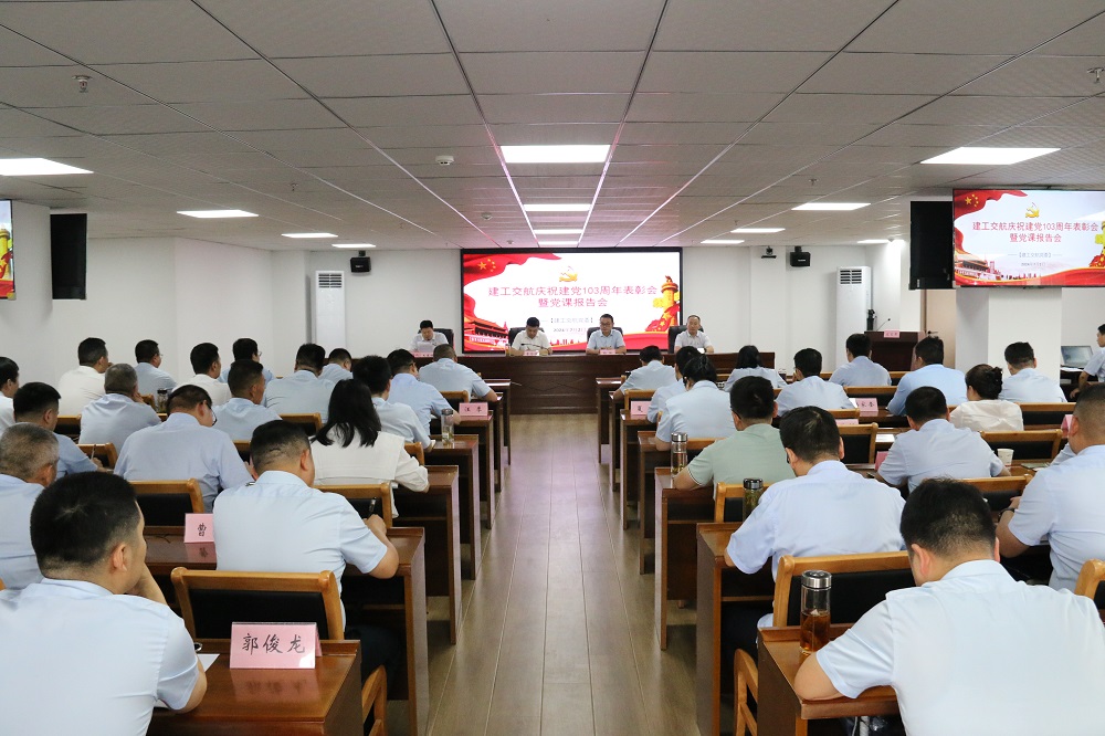 為慶祝中國共產(chǎn)黨成立103周年,深入推進(jìn)黨紀學(xué)習教育,充分發(fā)揮先進(jìn)典型表率示范作用,激勵廣大黨員干部主動(dòng)作為、銳意進(jìn)取、爭先創(chuàng )優(yōu),7月2日下午,建工交航黨委召開(kāi)慶祝建黨103周年表彰大會(huì )暨黨課報告會(huì )。會(huì )議由黨委委員、副總經(jīng)理、工會(huì )主席王黎明主持。