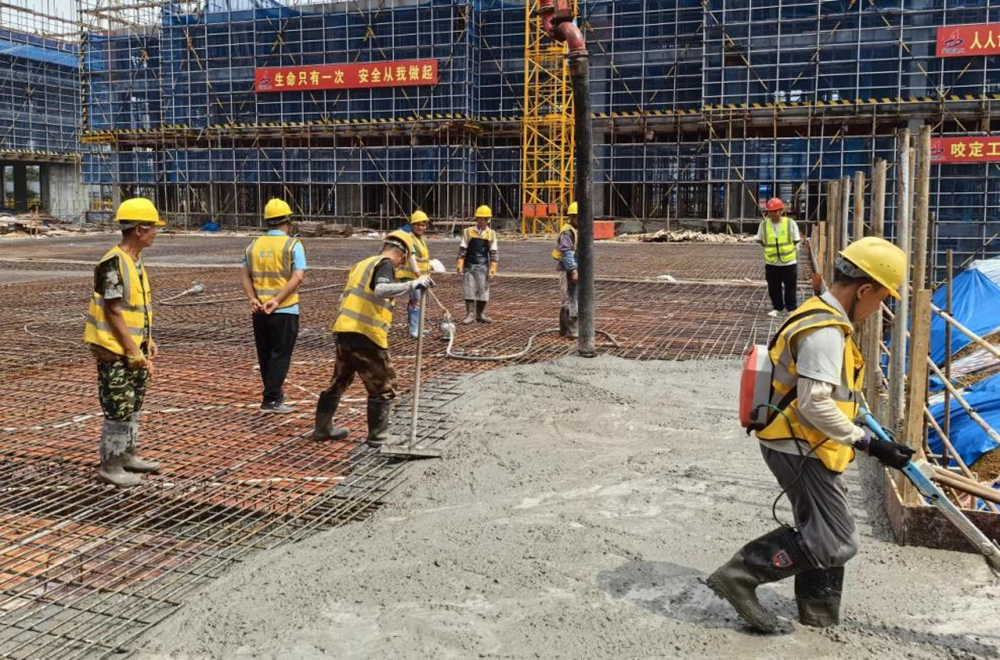 此次澆筑的兩層地下室約24000平方米,總澆筑量達兩萬(wàn)多立方米。項目樹(shù)立以安全為紅線(xiàn),以質(zhì)量為底線(xiàn),以進(jìn)度為主線(xiàn)的管理思路,建立健全安全質(zhì)量管理體系。為保證施工質(zhì)量,項目團隊精心編制施工方案,進(jìn)行技術(shù)交底,開(kāi)展專(zhuān)項培訓,現場(chǎng)投入3臺汽車(chē)泵、2臺拖泵,300余名施工人員三班作業(yè)、20余名管理人員輪班值守,順利完成澆筑任務(wù),為后續施工順利進(jìn)行打下堅實(shí)基礎,目前項目正全力沖刺8月底主體樓棟全部封頂目標。