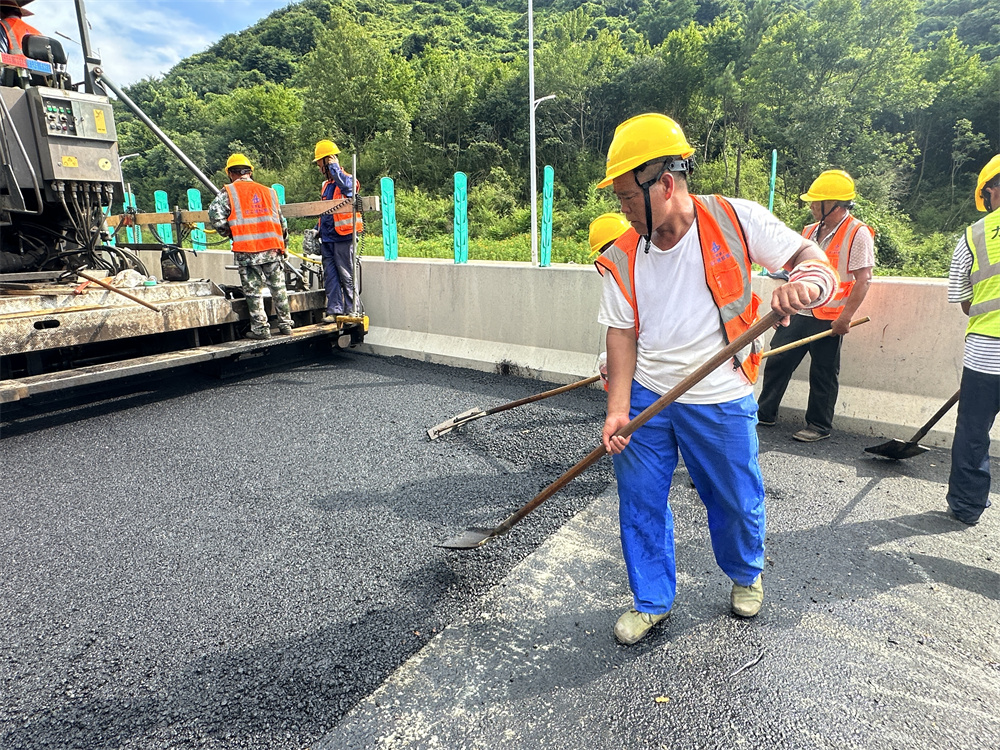 建工建投集團繁昌S334項目施工現場(chǎng),36度高溫的“烤”驗沒(méi)有阻擋任何一位施工人員熱火朝天的干勁,工人們站在滾燙的瀝青料上,頭頂烈日、揮汗如雨,全身心地投入到瀝青中面層攤鋪施工中,為實(shí)現最終通車(chē)目標發(fā)起沖刺。
