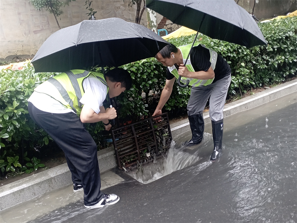 7月11日,受連續強降雨影響,合肥市區水位持續上漲,多個(gè)積水點(diǎn)水位超過(guò)預警。建工建投南新莊城中村改造項目部組織搶險救援、疏散引導、后勤保障、通訊聯(lián)絡(luò )等小組開(kāi)展24小時(shí)帶班防汛,現場(chǎng)生產(chǎn)經(jīng)理和施工員正在進(jìn)行清理排水管道堵塞疏通清淤作業(yè),為項目生產(chǎn)和臨近周邊住戶(hù)安全提供了有力保障。