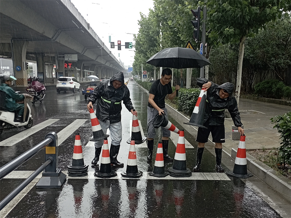 潛山路(望江西路-長(cháng)江西路)改造工程項目針對汛期合理安排項目人員輪班值守,時(shí)刻關(guān)注天氣變化,加強防汛準備,在道路積水段采用人工助排、設備抽水等方式,保障社會(huì )道路暢通,同時(shí)協(xié)助交警部門(mén)指揮沿線(xiàn)過(guò)往車(chē)輛,全力以赴確保居民出行安全。