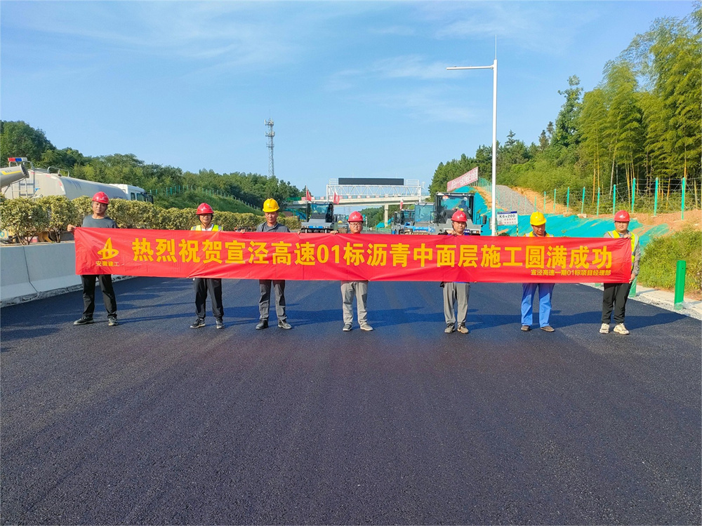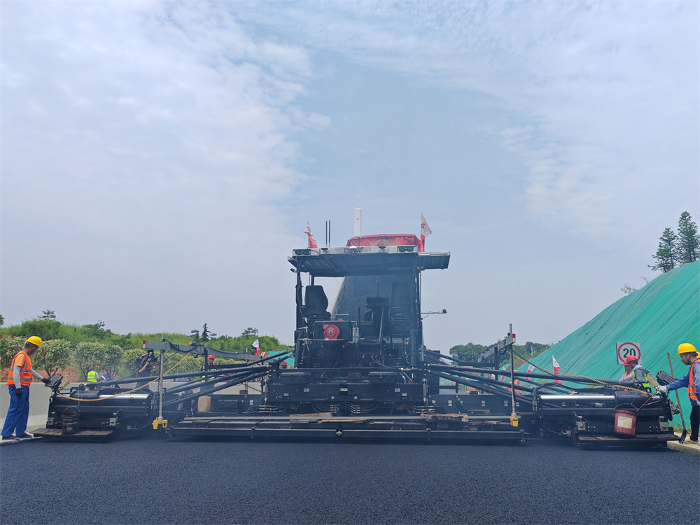 宣涇高速01標中面層攤鋪采用6厘米SBS改性瀝青,設計瀝青混合料約3萬(wàn)噸,攤鋪里程25.2公里。項目部積極擁抱新質(zhì)生產(chǎn)力,采用無(wú)人攤壓先進(jìn)技術(shù),在省內首次實(shí)現高速公路瀝青無(wú)人攤壓規?;┕?。同時(shí)在面對陰雨、高溫天氣等諸多困難下,確保瀝青混合料配比、厚度、壓實(shí)度、平整度、橫坡等各項指標滿(mǎn)足規范要求,提前謀劃,成立專(zhuān)題工作小組,全面負責瀝青面層施工的動(dòng)員、組織、質(zhì)量安全控制及總結等工作,精細化施工,全線(xiàn)率先圓滿(mǎn)完成主線(xiàn)中面層施工任務(wù)。