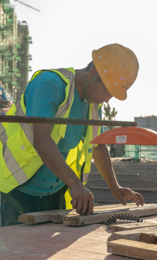 正在忙著(zhù)測量模板的木工鄔效好小心翼翼地操作著(zhù)工具,確保每一塊木材的精準度。