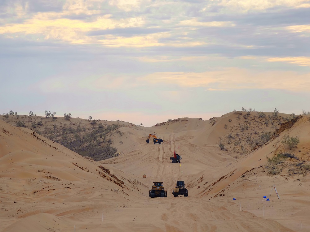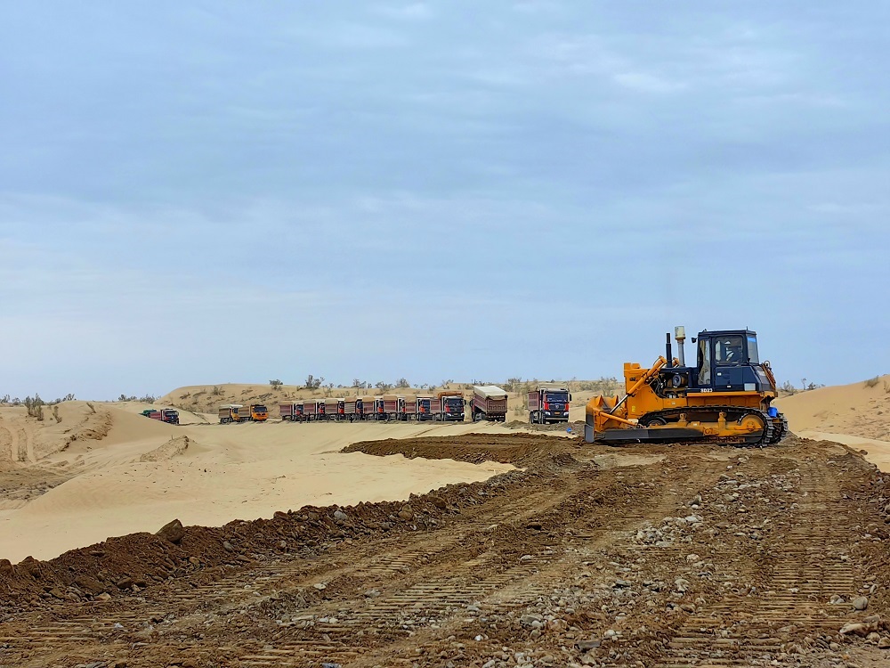 從烏魯木齊啟程,經(jīng)過(guò)近4個(gè)小時(shí)路途,其中有3個(gè)小時(shí)皆為荒蕪的無(wú)人區沙漠戈壁地段。在到達項目施工現場(chǎng)后,干戈實(shí)地查看項目生產(chǎn)進(jìn)度,詳細了解項目員工的生活工作環(huán)境。對項目員工在沙漠戈壁無(wú)人區努力戰勝艱苦施工環(huán)境,順利完成47.76公里的路基填筑,給予了高度贊賞和充分肯定。同時(shí),干戈要求項目管理人員務(wù)必做好防暑降溫和安全生產(chǎn)工作,強化源頭管控,切實(shí)完成各項工作,確保如期達成各項節點(diǎn)目標。
