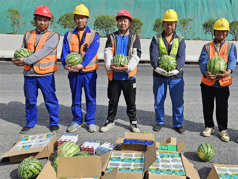 在戰高溫保生產(chǎn)的同時(shí), 各項目部通過(guò)合理安排高溫天氣工作時(shí)間、設置防暑降溫納涼點(diǎn)、發(fā)放綠豆湯和防暑降溫藥品等措施,切實(shí)為建設者做好服務(wù)保障工作。
