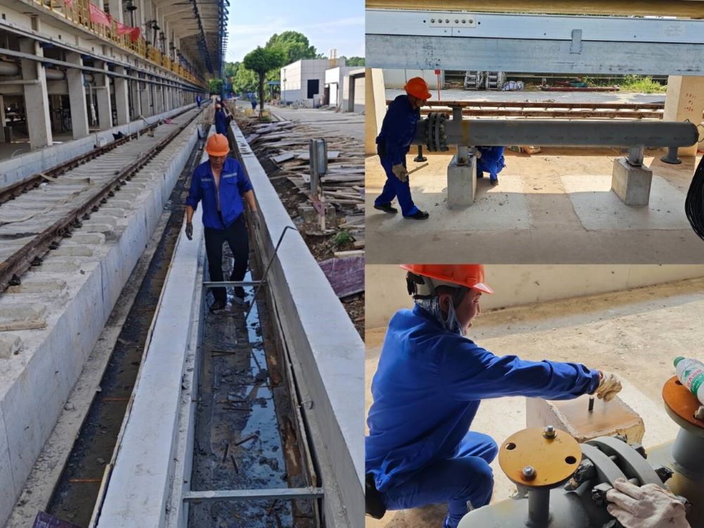 安慶石化新增鐵路接卸純苯設施項目,土建項目已基本完工,現剩余整體道床排水溝和兩側回填混凝體澆筑、控制室內裝飾裝修等工作;設備安裝部分完成安裝六臺換熱器、六臺鶴管,預計九月底完工。圖為道床混凝土澆筑和換熱器安裝。
