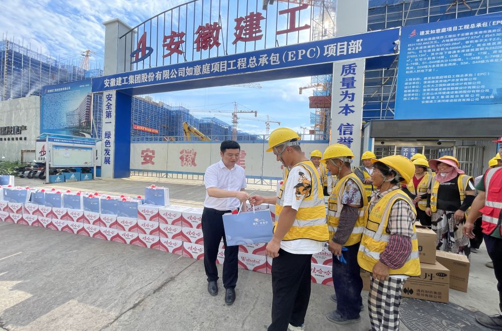 班子成員深入長(cháng)豐縣崗集鎮金明花園五期、建發(fā)·如意庭、蕪湖經(jīng)開(kāi)區汽車(chē)電子產(chǎn)業(yè)園等項目,詳細了解一線(xiàn)建設者工作、生活情況,為他們送上西瓜、藿香正氣水防暑降溫物品,叮囑大家加強自我防護,注意勞逸結合。結合集中整治工作安排,深入項目督導檢查安全生產(chǎn)責任制和防暑降溫措施落實(shí)落細情況,強調要貫徹“安全第一、預防為主、綜合治理”的安全生產(chǎn)方針,科學(xué)組織施工、合理安排作息,確保公司所屬項目施工安全、平穩度夏、高效推進(jìn)。