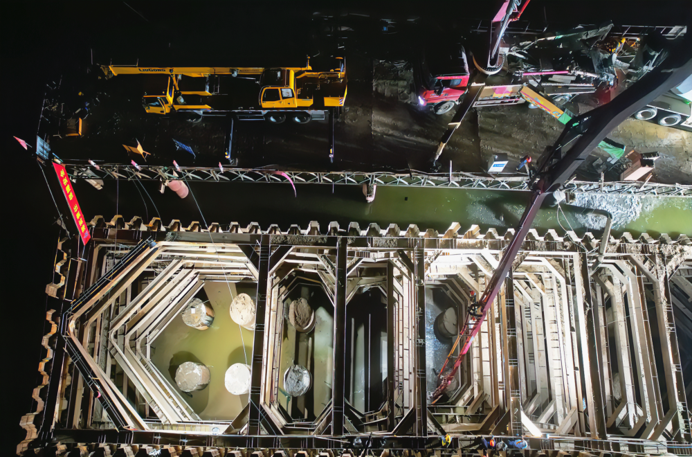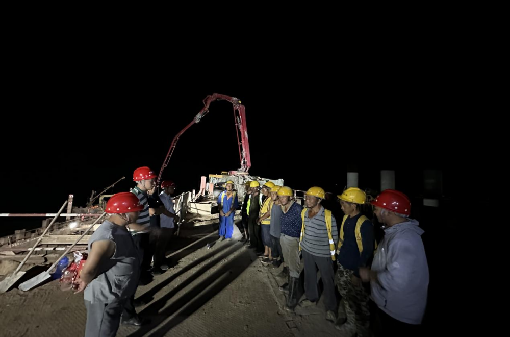 在整個(gè)作業(yè)過(guò)程中,工人們身穿防護服,頭戴安全帽,在圍堰內奮力作業(yè),他們的身影在晨曦和夕陽(yáng)下忙碌。每一方混凝土的落下,都凝聚著(zhù)他們的汗水和智慧;每一聲機器的轟鳴,都宣告著(zhù)他們向勝利邁進(jìn)的堅定步伐。