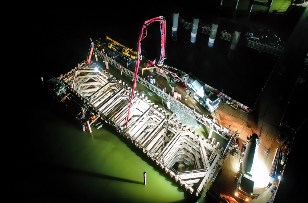 為確保鋼圍堰順利封底,項目部提前組織專(zhuān)家對封底施工方案進(jìn)行專(zhuān)項評審,對各施工班組細化分工、反復交底,并提前半個(gè)月開(kāi)始著(zhù)手物資儲備和試驗檢測工作,從混凝土的原材料、拌和、輸送、澆筑能力做了全方位準備和測試,以保障混凝土施工的連續性,穩步推進(jìn)施工作業(yè)。封底結束后,經(jīng)現場(chǎng)量測計算,鋼圍堰和鋼護筒穩定無(wú)變形,封底厚度和標高控制良好,達到了設計標準和規范要求。