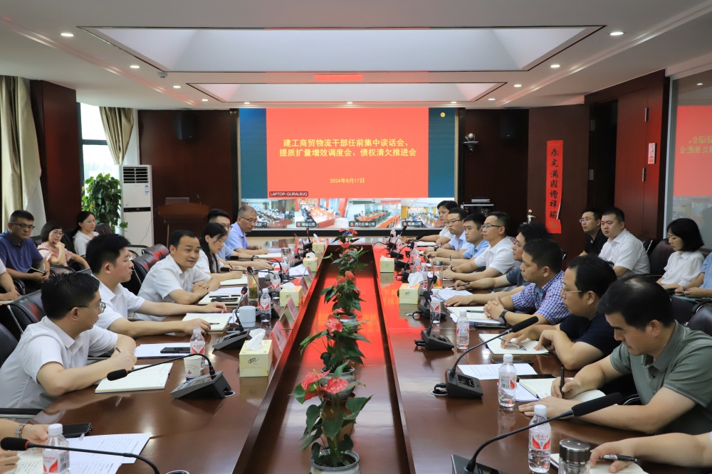 8月17日周六下午,建工商貿物流三會(huì )合一分階段召開(kāi)干部任前集中談話(huà)會(huì )、提質(zhì)擴量增效調度會(huì )、債權清欠推進(jìn)會(huì )。建工股份副總經(jīng)理、公司黨委書(shū)記、董事長(cháng)張沖總結講話(huà),公司領(lǐng)導黃麗春、唐少先、朱敏、韓旭、張斗鵬參加。