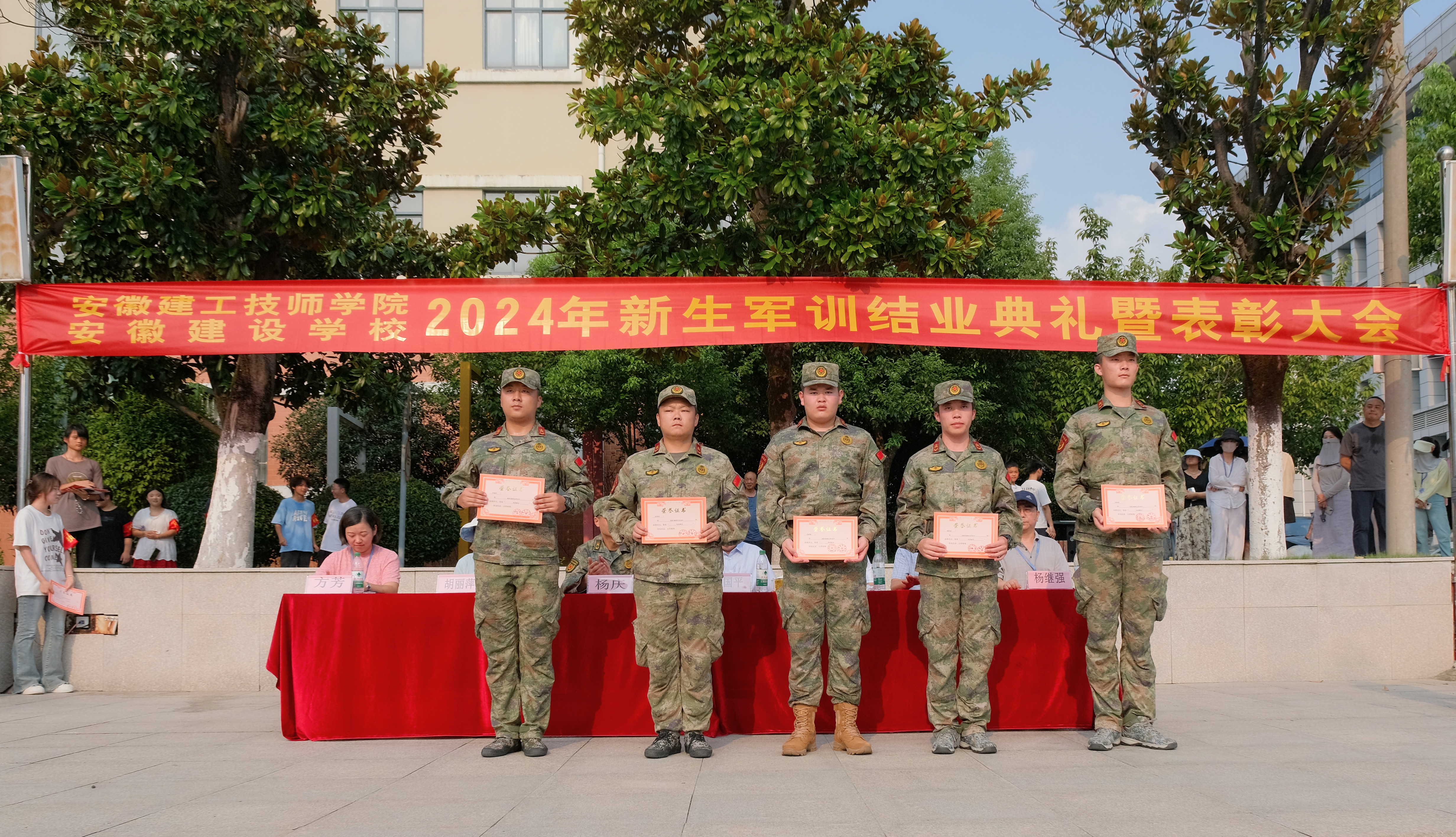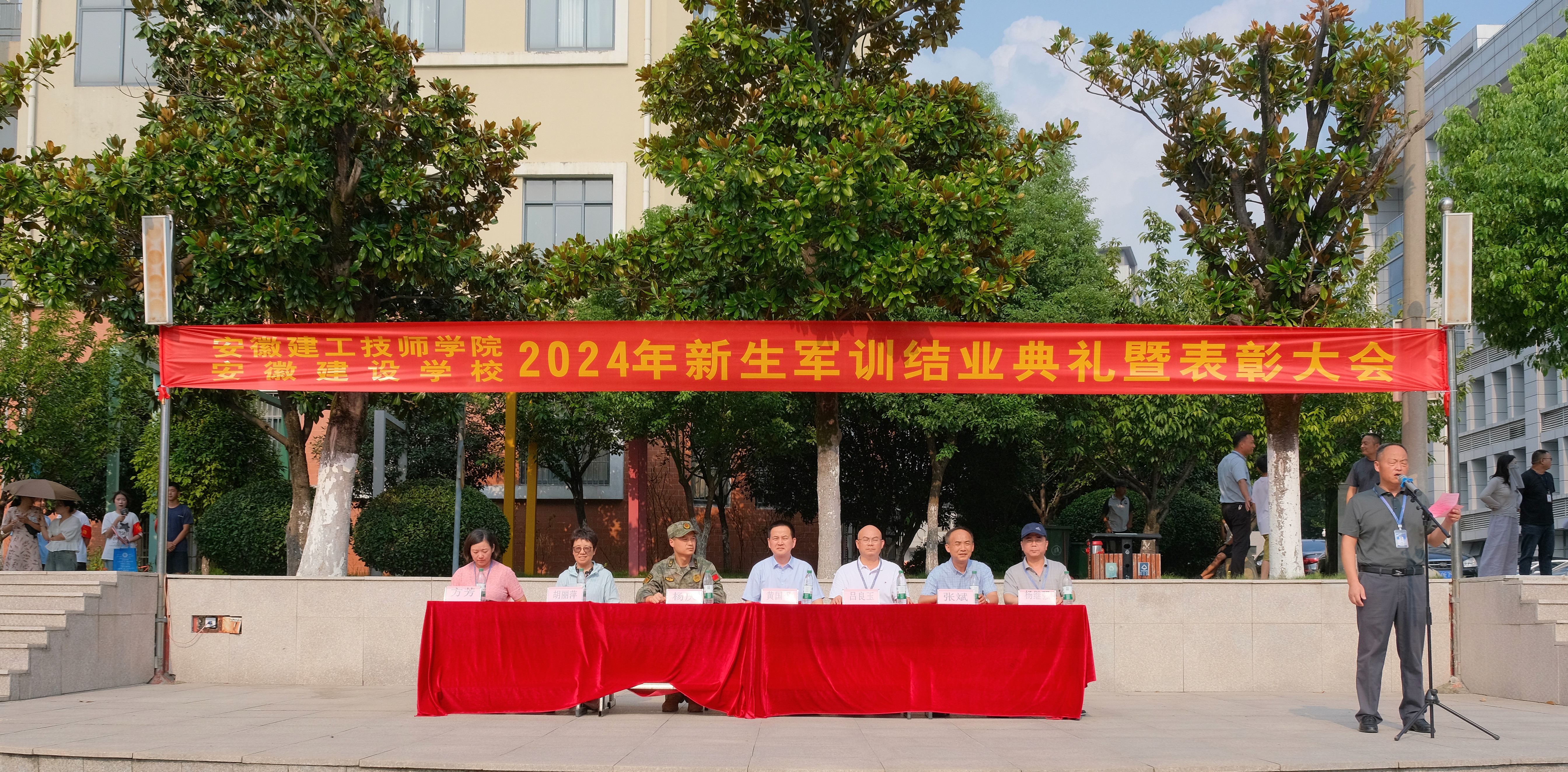 金秋送爽,碩果累累。?經(jīng)過(guò)一周的訓練與磨礪,安徽建工技師學(xué)院(安徽建設學(xué)校)望湖校區迎來(lái)了2024級新生軍訓結業(yè)典禮暨表彰大會(huì )。?全體參訓新生面貌一新,精神飽滿(mǎn),?共同見(jiàn)證了這一榮耀時(shí)刻。包河區望湖街道武裝部部長(cháng)楊慶,安徽建工技師學(xué)院黨委副書(shū)記、院長(cháng)黃國平,學(xué)院黨委委員、副院長(cháng)呂良玉,學(xué)院工會(huì )主席張斌,建筑藝術(shù)系黨支部副書(shū)記方芳,信息技術(shù)系黨支部書(shū)記楊繼強,城市管理系黨支部書(shū)記胡麗萍等領(lǐng)導,各系學(xué)管老師、新生班主任、全體軍訓教官參加。