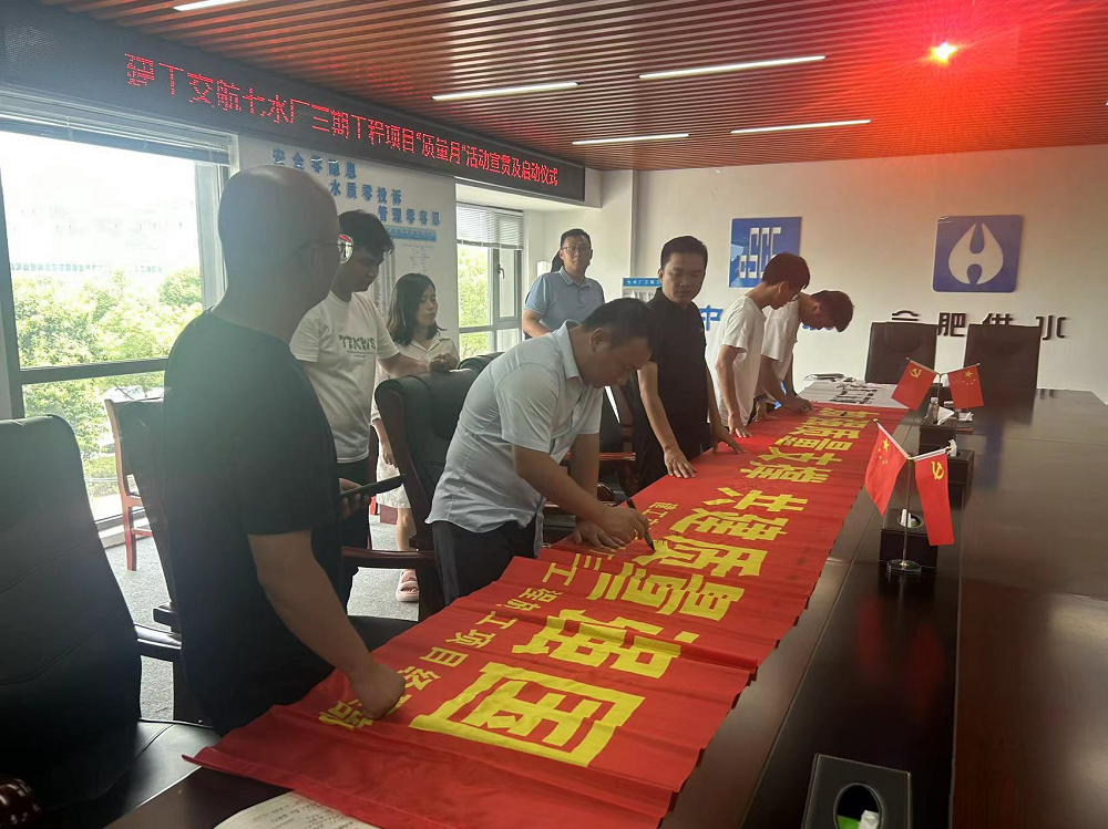 9月3日,七水廠(chǎng)三期工程項目開(kāi)展2024年“質(zhì)量月”活動(dòng)啟動(dòng)儀式,宣貫公司文件、質(zhì)量月宣誓及項目質(zhì)量月活動(dòng)方案宣貫、組織觀(guān)看質(zhì)量事故案例、制作宣傳條幅并簽名。