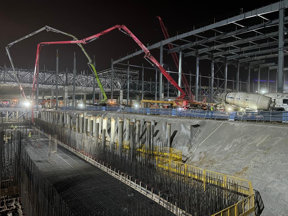 接到澆筑計劃后,安徽瑞特高度重視,三站協(xié)同,迅速行動(dòng),召開(kāi)專(zhuān)題會(huì )議,制定詳細的保供方案。面對大體量的混凝土澆筑和緊迫的工期要求,各站點(diǎn)及部門(mén)通力合作、多措并舉,科學(xué)調度、統籌管理;值班人員24小時(shí)輪班值崗,嚴控澆筑全過(guò)程。施工澆筑任務(wù)的順利完成,得益于精心的組織、及時(shí)的供應和優(yōu)良的質(zhì)量,充分展現安徽瑞特高效的履約服務(wù)能力,獲得項目方高度認可。