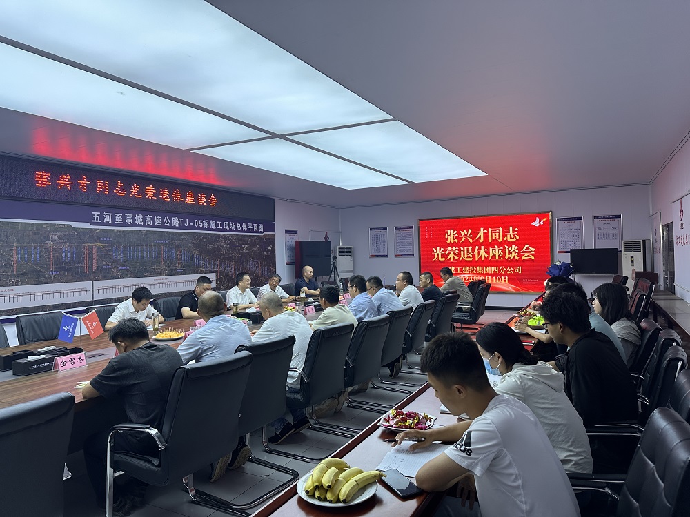 9月10日,建工建投集團四分公司在五蒙高速05標項目為張興才同志舉辦退休職工座談會(huì )。公司黨委副書(shū)記、工會(huì )主席干戈、四分公司領(lǐng)導班子及項目代表參加本次座談會(huì )。