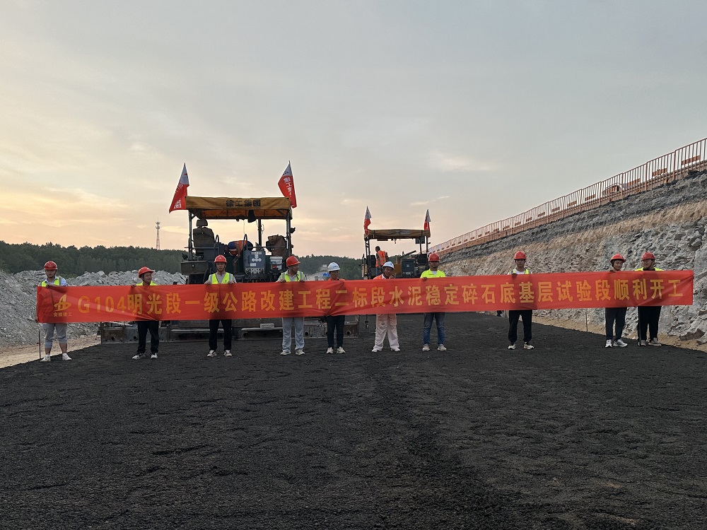 9月10日,G104明光段一級公路改建工程二標段底基層水穩試驗段順利完成鋪筑,標志著(zhù)進(jìn)入路面施工階段。