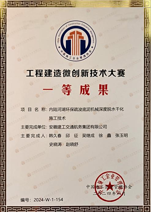 在工程建造微創(chuàng )新技術(shù)大賽中,公司申報的“內陸河湖環(huán)保疏浚底泥機械深度脫水干化施工技術(shù)”和“立體交叉綜合管廊深基坑支護施工技術(shù)”分別榮獲一等獎和三等獎。