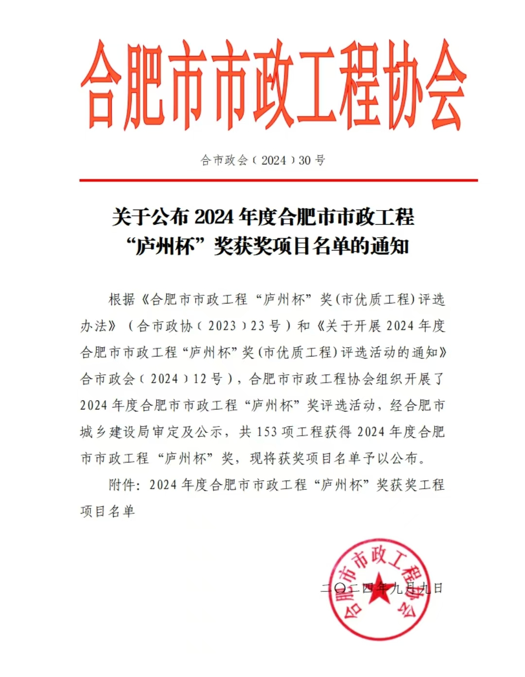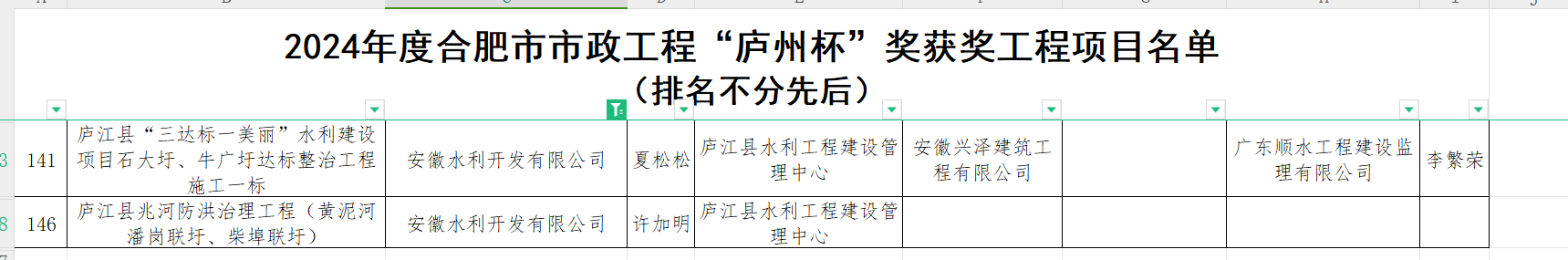 近日,合肥市市政工程協(xié)會(huì )公布了2024年度合肥市市政工程“廬州杯”獲獎名單,安徽水利承建的廬江縣“三達標一美麗”水利建設項目石大圩、牛廣圩達標整治工程施工一標和廬江縣兆河防洪治理工程(黃泥河潘崗聯(lián)圩、柴埠聯(lián)圩)斬獲殊榮。