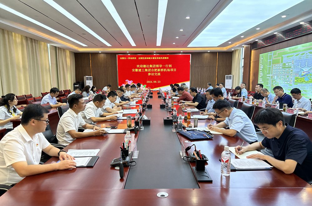9月23日,德州德達投資控股集團黨委書(shū)記、董事長(cháng)呂光坤,合肥工業(yè)大學(xué)高等培訓教育中心副主任湯匯道一行到安徽建工合肥新橋國際機場(chǎng)T2航站樓施工總承包工程和綜合交通中心(含軌道引入)及配套工程項目參訪(fǎng)交流。建工總承包黨委書(shū)記、總經(jīng)理傅宏林,建工路橋黨委委員、副總經(jīng)理程濤熱情接待并座談交流。
