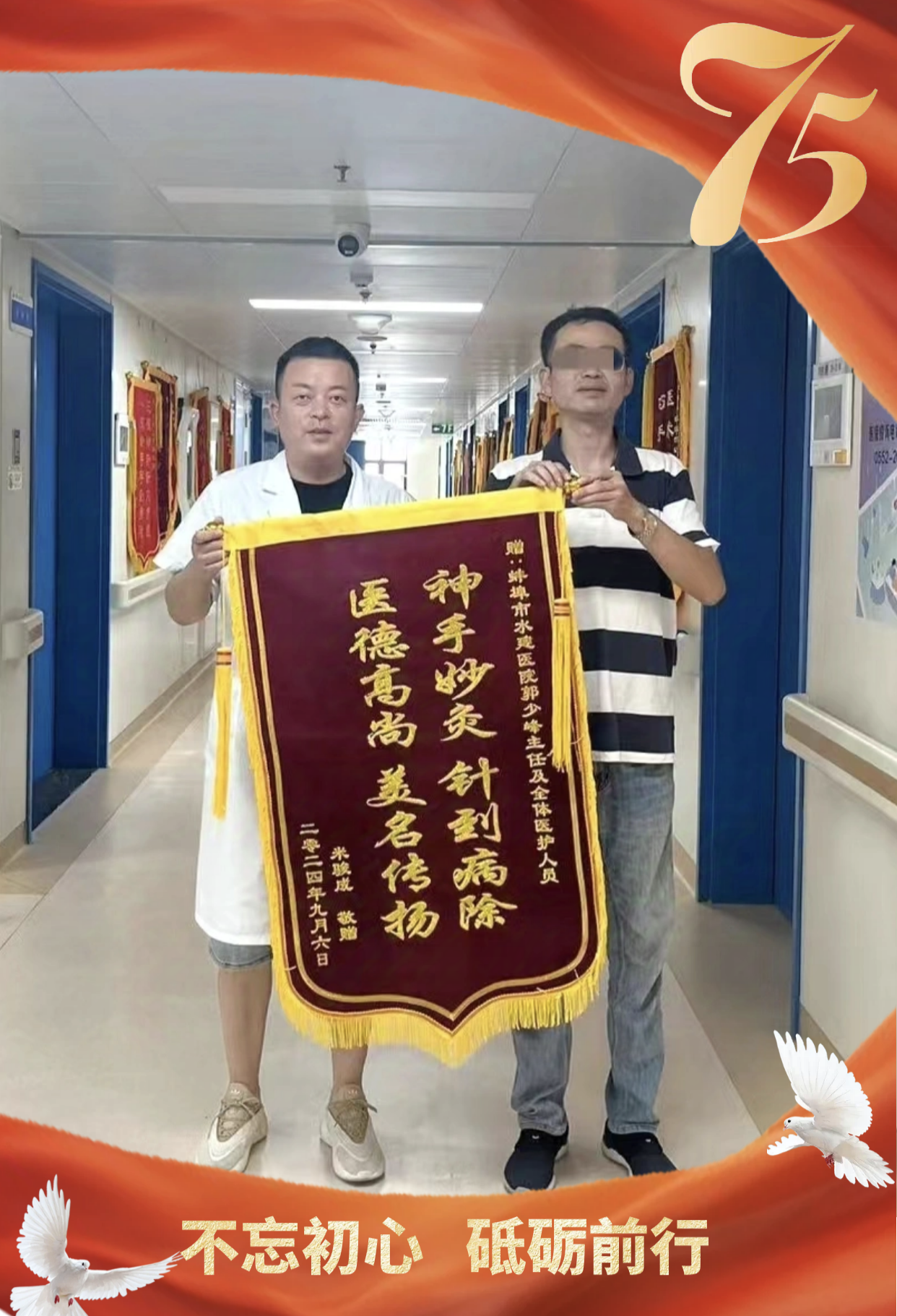 張先生因腰痛嚴重,無(wú)法直立,日常生活嚴重受到影響,根據張先生病情,針推康復科王主任通過(guò)針灸、正骨推拿、中藥熏蒸、小針刀等綜合康復治療后,張先生的癥狀明顯改善,隨后,連續多次康復治療后,張先生的腰椎可以直立起來(lái),不適癥狀基本消失。張先生對針推康復科王永林副主任醫師的精湛技術(shù)深表佩服,特地贈送錦旗表達感激之情。