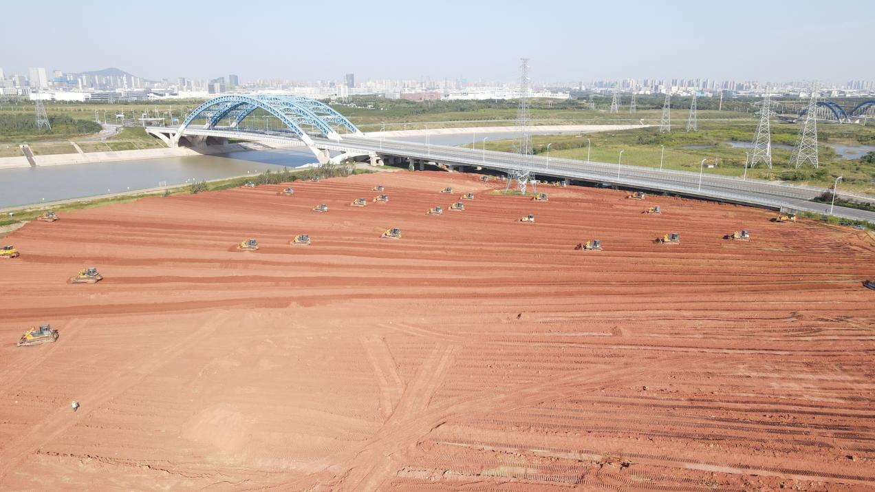 項目位于合肥市高新區引江濟淮蜀山樞紐南側,復墾面積達5669畝,工期緊,任務(wù)重。為了交上一張高質(zhì)量的“速寫(xiě)”答卷,項目部聚焦“硬骨頭”,錨定關(guān)鍵節點(diǎn),安排專(zhuān)業(yè)人員根據現場(chǎng)各區域表土、有效土及紅砂巖實(shí)際存儲情況結合原復墾方案實(shí)時(shí)調整復墾高程,確保各區域內部土方最終平衡,并與設計院密切配合,及時(shí)完善設計內容,推進(jìn)施工圖出圖進(jìn)度,確保施工圖紙在大批量土方等關(guān)鍵節點(diǎn)完成前提供,避免返工風(fēng)險。過(guò)程中,項目嚴格按照濕法作業(yè)進(jìn)行施工,配備高桿霧炮機及移動(dòng)霧炮機及時(shí)降塵,各工區均配備灑水車(chē)對現場(chǎng)不間斷灑水降塵,確?,F場(chǎng)滿(mǎn)足環(huán)保要求。