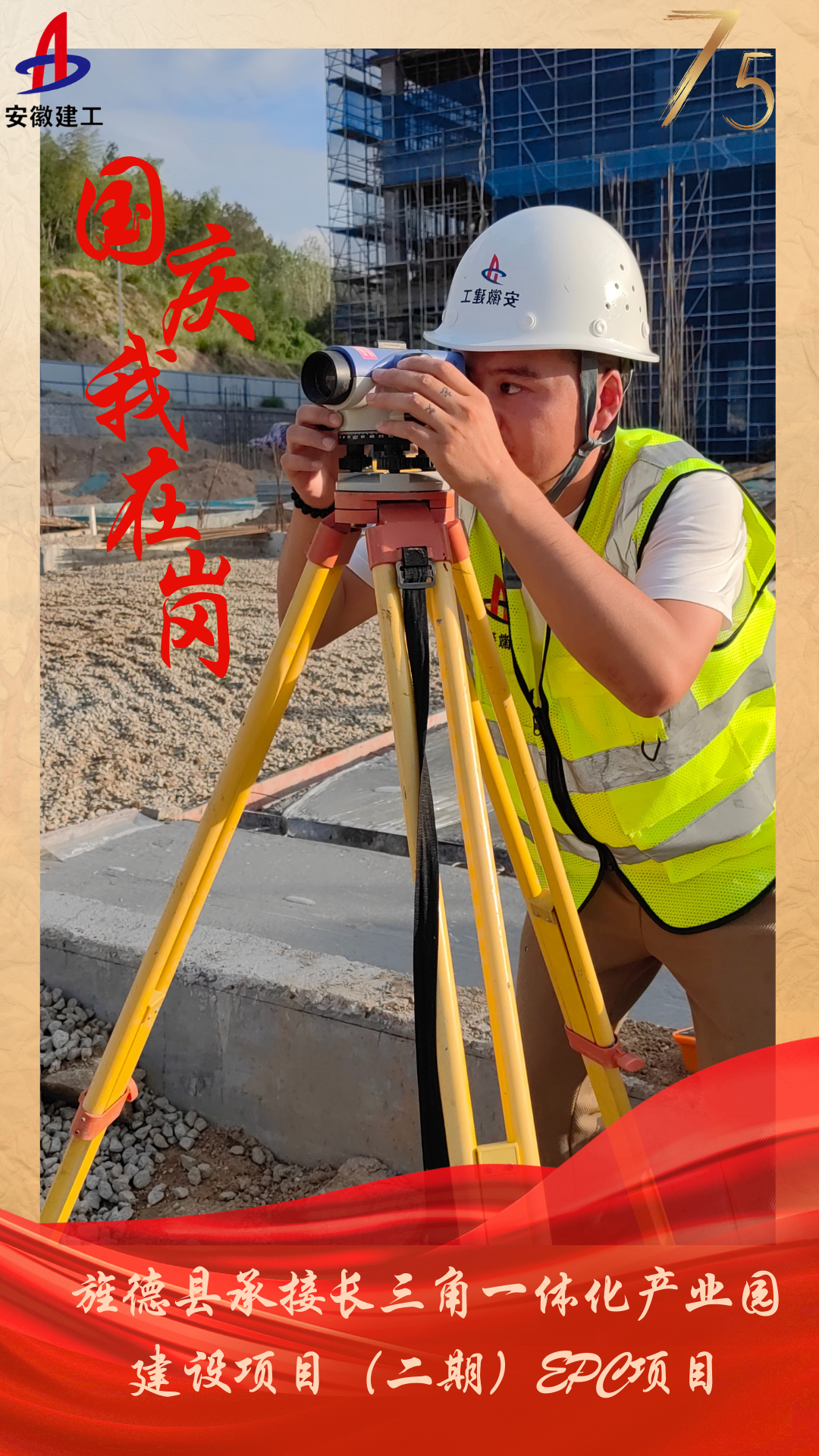 旌德縣承接長(cháng)三角一體化產(chǎn)業(yè)園建設項目(二期)EPC項目施工員陳正正在進(jìn)行地坪碎石墊層抄平工作。