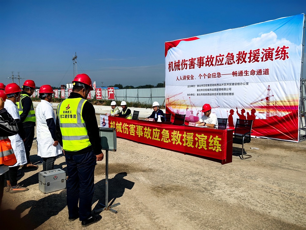為進(jìn)一步提高項目建設過(guò)程中的應急處置能力,確保施工安全,淮北市高鐵西站綜合開(kāi)發(fā)項目在國慶節期間開(kāi)展了一場(chǎng)緊張而嚴肅的應急演練。項目各參建單位高度重視,積極組織人員參與。