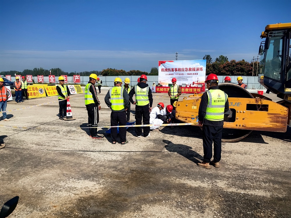 演練現場(chǎng),相關(guān)專(zhuān)業(yè)人員向全體參演人員詳細講解了遇到事故的應急處理方法和注意事項,確保大家在演練過(guò)程中能夠準確、迅速地做出反應。隨著(zhù)演練總指揮的一聲令下,模擬場(chǎng)景迅速展開(kāi):一臺壓路機在作業(yè)時(shí),由于操作不慎,碰到了前方正在施工的作業(yè)人員。事故發(fā)生后,現場(chǎng)立即陷入緊張狀態(tài),現場(chǎng)安全管理人員第一時(shí)間發(fā)現情況,迅速啟動(dòng)應急預案,設置警示標志,確保救援通道的暢通和現場(chǎng)安全保障工作;后勤保障組迅速行動(dòng),一方面將事故情況及時(shí)上報給項目領(lǐng)導和相關(guān)部門(mén),另一方面緊急聯(lián)系醫療急救單位;醫療救護組攜帶急救設備和藥品,以最快的速度趕到現場(chǎng)對受傷人員進(jìn)行了初步的檢查和緊急救治,穩定傷者的生命體征,為后續的醫療轉運爭取寶貴時(shí)間。