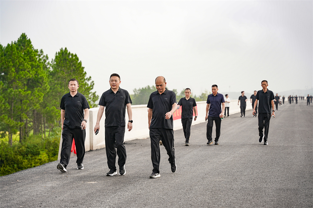 胡晨在講話(huà)中強調,涇青高速作為安徽省“五縱十橫”高速公路網(wǎng)的重要組成部分,既是串聯(lián)區域交通的“動(dòng)脈線(xiàn)”,更是推動(dòng)地方經(jīng)濟發(fā)展、改善民生福祉的“希望路”。他高度認可建工建投集團在項目建設中展現的責任擔當與專(zhuān)業(yè)實(shí)力,寄語(yǔ)全體建設者以此次健步走活動(dòng)為契機,將徒步中迸發(fā)的活力、毅力轉化為工作干勁,全力推進(jìn)項目建設,確保這條連接“詩(shī)意山水”與“發(fā)展機遇”的通道早日通車(chē)、惠及百姓。