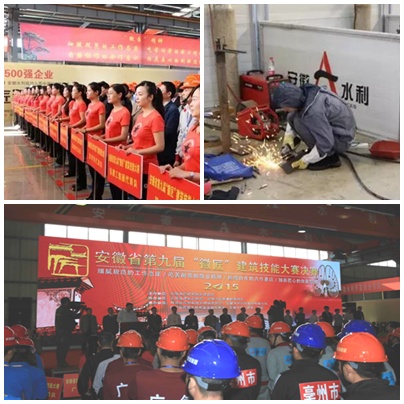 2015年10月14日,由安徽水利股份金屬結構總廠(chǎng)承辦的安徽省第九屆“徽匠”建筑技能大賽在嘉和工業(yè)園如期舉行,來(lái)自全省各地市21支代表隊的近百名選手參賽。蚌埠市副市長(cháng)胡啟望在開(kāi)幕式上致辭,省住建廳、省總工會(huì )、蚌埠市住建委等相關(guān)單位負責親臨比賽現場(chǎng)。