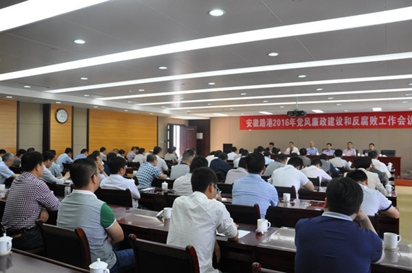 5月6日上午,安徽路港公司在省黨風(fēng)廉政建設教育基地召開(kāi)2016年黨風(fēng)廉政建設和反腐敗工作會(huì )議,傳達貫徹省國資委、集團黨委黨風(fēng)廉政建設和反腐敗工作會(huì )議精神,部署了公司2016年紀檢監察工作。公司機關(guān)部門(mén)副職及以上人員、機關(guān)全體黨員、子(分)公司領(lǐng)導班子成員、各項目經(jīng)理及支部書(shū)記共有98人參加會(huì )議,黨委副書(shū)記馬斌主持會(huì )議。