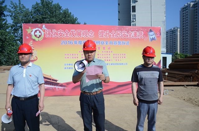 今年6月是全國第15個(gè)“安全生產(chǎn)月”,為貫徹落實(shí)集團公司關(guān)于開(kāi)展“安全生產(chǎn)月”活動(dòng)的工作部署,牢固樹(shù)立安全發(fā)展觀(guān)念,推動(dòng)公司安全生產(chǎn)形勢持續穩定向好,2016年6月17日上午8:00,安徽建工建筑材料有限公司“安全生產(chǎn)月”宣誓儀式及消防應急預案演練活動(dòng)在一分公司租賃站舉行。安建建材公司董事長(cháng)、總經(jīng)理張鍵,董事、黨委副書(shū)記胡運春,董事、副總經(jīng)理徐友修,機關(guān)各部門(mén)、一分公司及營(yíng)銷(xiāo)分公司外業(yè)人員、合肥建材相關(guān)人員等60余人參加。