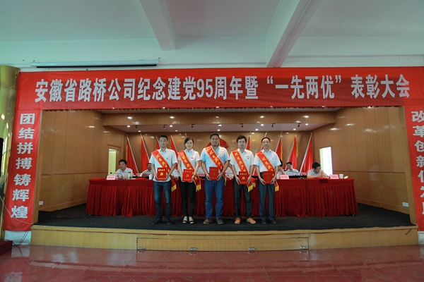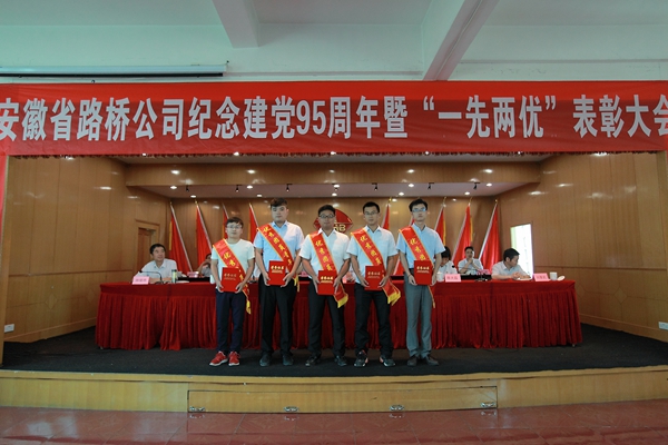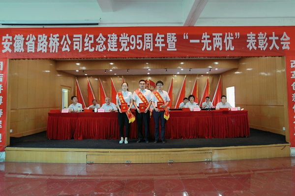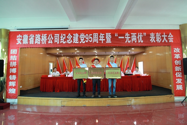 不忘初心,奮力開(kāi)拓鑄就輝煌業(yè)績(jì);堅定信仰,信心滿(mǎn)懷共創(chuàng )美好明天。 6月29日上午,安徽路橋公司隆重舉行紀念中國共產(chǎn)黨成立95周年暨“一先兩優(yōu)”表彰大會(huì )。安徽路橋公司中層以上黨員領(lǐng)導人員,各基層黨支部負責人,團委委員,受表彰的先進(jìn)黨組織、團組織代表、優(yōu)秀黨員、優(yōu)秀黨務(wù)工作者和優(yōu)秀團員青年,參加集體宣誓的黨員代表共120余人參加會(huì )議。會(huì )議由安徽路橋公司黨委委員、總工程師彭申凱主持。