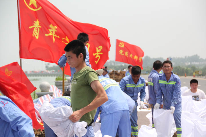 由于近期連續普降大雨,巢湖水位猛漲,為防止超強臺風(fēng)“尼伯特”帶來(lái)大風(fēng)暴雨引起湖水漫堤,淹沒(méi)沿岸房屋和農田,合肥市委、市政府決定在巢湖北岸沿環(huán)湖北路構筑一條防洪墻。7月8日上午,接到防汛抗災任務(wù)。時(shí)間緊急,保衛合肥市人民生命財產(chǎn)安全高于一切。安徽省公路橋梁工程有限公司高度重視,迅速組織召開(kāi)動(dòng)員會(huì ),命令各項目立即組織人員機械趕往合肥。不到2個(gè)小時(shí),首批500余人的隊伍和機械集結巢湖岸邊,立即投入戰斗,挖土、裝袋、壘墻。整個(gè)防汛抗災過(guò)程中,安徽路橋公司共投入人員近2000人、挖掘機等大型設備近百套。9日下午,遠在廣州出差的安徽路橋公司董事長(cháng)孫學(xué)軍火速趕到合肥,當晚,在巢湖岸邊的路燈下主持召開(kāi)工作會(huì ),親自指揮防汛抗災工作。持續3天的防汛抗災工作中,安徽路橋公司黨委書(shū)記陳光磊等領(lǐng)導班子全部到場(chǎng)指揮,副總經(jīng)理彭申凱、錢(qián)申春、任杰、杜海峰更是吃住在現場(chǎng)。