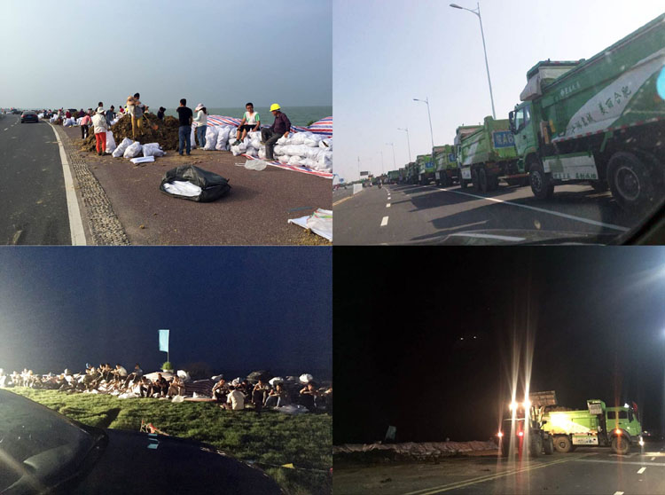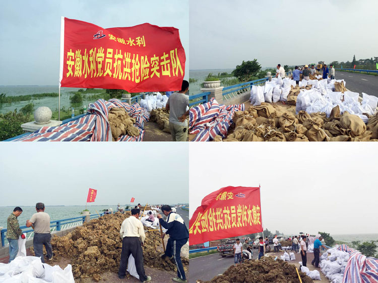 為確保人民群眾生命財產(chǎn)安全,7月7日晚,安徽水利合肥公司接到合肥市建委、重點(diǎn)局緊急通知后,立即成立了以經(jīng)理陶成祥為首的抗洪搶險領(lǐng)導小組,聯(lián)合安徽水利交通公司、安徽貝斯特公司,從各項目部抽調了1600余名工人、12臺挖掘機、50輛渣土車(chē)、8臺發(fā)電機、11臺鏟車(chē)等,即刻奔赴巢湖環(huán)湖大道三河段、十五里河前楊橋段等地,投入到緊張的抗洪搶險工作中。在連續奮戰三個(gè)晝夜后,截止到7月11日,在環(huán)湖大道三河段完成土石方8160m³,形成了一條6800米長(cháng)、1.2米高、1米寬的防洪堤壩,在十五里河前楊橋段完成土石方1560m³,使得環(huán)湖大道三河段、十五里河前楊橋段險情得到有效緩解。
