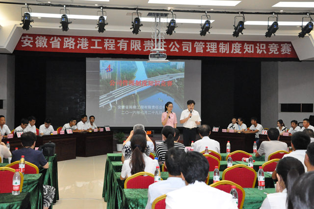 為提高安徽路港公司廣大員工學(xué)習公司管理制度的自覺(jué)性,營(yíng)造濃厚的學(xué)習氛圍,保障公司管理制度的貫徹執行,助推公司持續、穩定、健康發(fā)展,7月29日下午,安徽路港公司在安建大廈3樓會(huì )議室舉辦公司管理制度知識競賽。來(lái)自公司所屬各單位、項目部的22支代表隊共66名選手參加比賽。本次競賽邀請了集團公司工會(huì )副主席吳曉伍到會(huì )指導并擔任裁判。安徽路港公司董事長(cháng)李振標、黨委副書(shū)記馬斌、副總經(jīng)理袁民、紀委書(shū)記、工會(huì )主席干戈、財務(wù)總監章興紅出席。